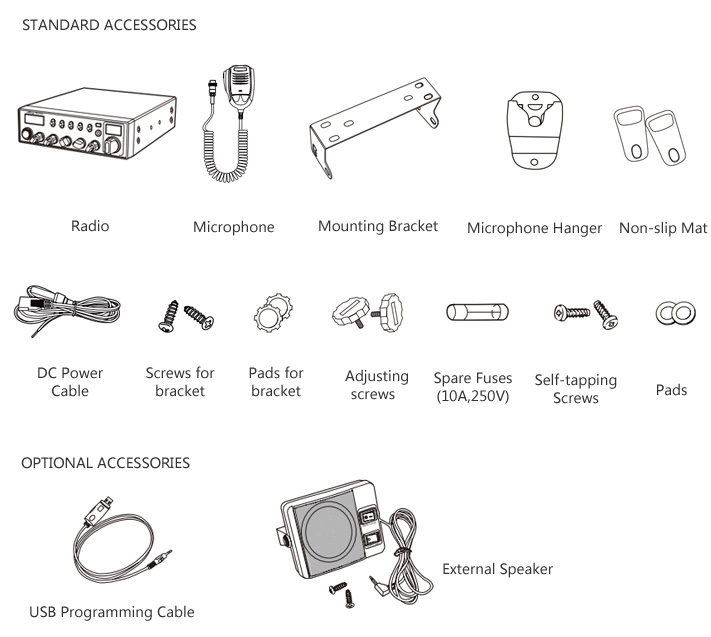| Microphone | with push-to-talk /UP/DN and coiled cord |