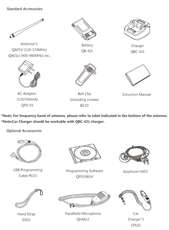 VHF:136-174MHZ UHF:350-390MHz UHF:400-470MHZ UHF:450-520MHz |