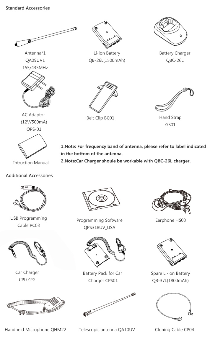 VHF:144-146MHZ UHF:430-440MHZ FM:76~108MHz(Rx) |