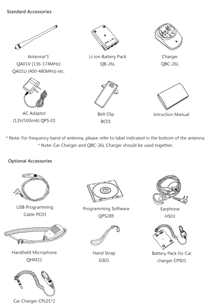 VHF:136-174MHz VHF:350 -390MHz UHF: 400-470MHz UHF:450-520MHz |